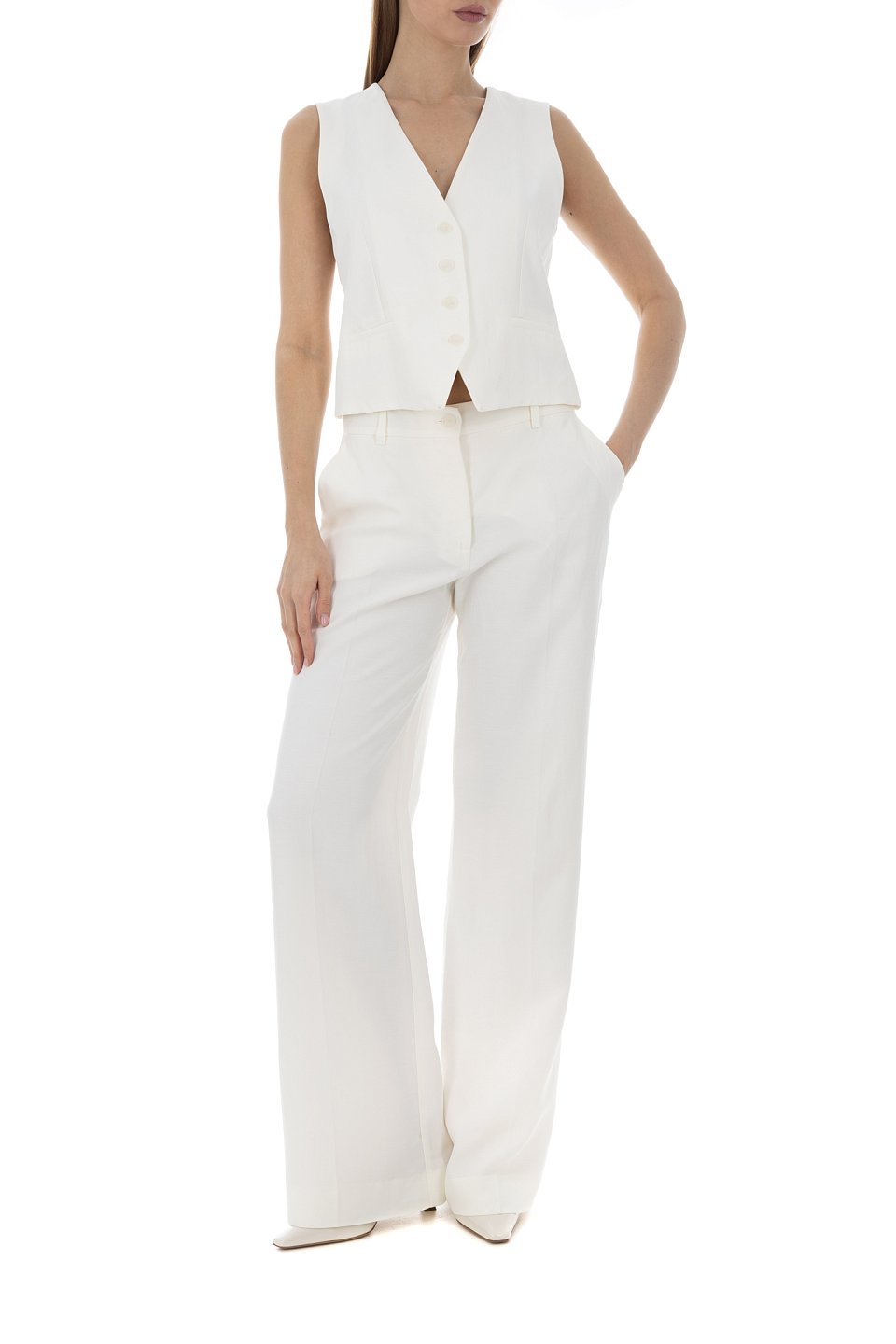 - Вискоза: 72%; Лен: 28%; Подкладка-ацетат: 56%; Подкладка-вискоза: 44%;